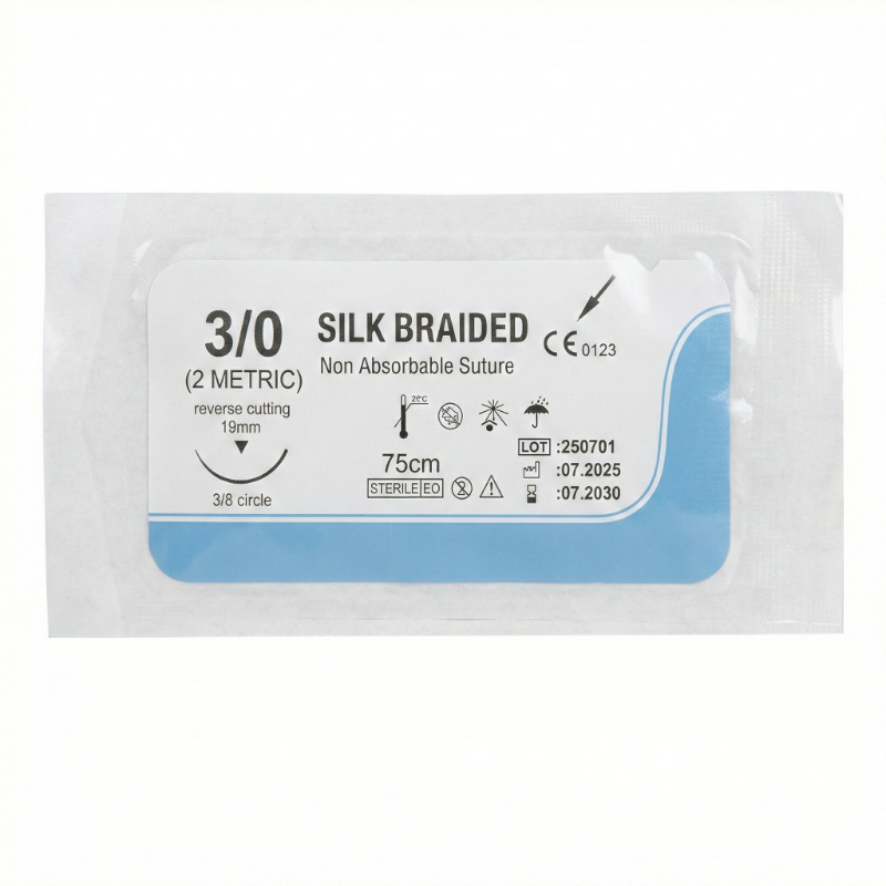 חוט תפירה רפואי כירורגי *משי* מידה 3/0 – מארז 12 יחידות