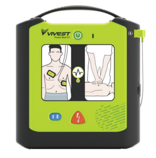 דפיברילטור VIVEST Powerbeat X1 הוא פתרון נייד ופשוט להפעלה במצב חירום לבבי.